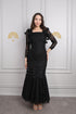 تم تصميم الفستان بالكامل من قماش الدانتيل, بياقة مربعة بطول ميدي بتصميم ضيق يلتصق على الجسم مما يضفي عليه اناقة ونعومة. زينت الاكتاف بتطريزات لؤلؤية واضيفت لمسات من الزهور تمتد حتى نهاية الفستان لتمنحه تفصيلاً لافتاً ومميزاً. اختياركم لهذا الفستان في مناسباتكم الخاصة او الفعاليات يعد خياراً مثالياً لكم.