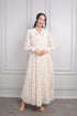 فستان انيق بلمسات دانيتل على الياقة والحزام, بتفاصيل تكسيرات في تنورته. الفستان بالكامل منقش بالزهور. يجمع بين الطابع الكلاسيكي والقصّة العصرية. بأكمام منفوشة وتفاصيل على الاساور تضيف له لمسة جمالية. اختياركم لهذا الفستان في مناسباتكم الخاصة او الدعوات يعد خياراً مثالياً لكم.