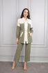 طقم سروال وجاكيت بلونين بحبل عالخصر -زيتي