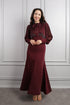 فستان ناعم مزين بالخرز باكمام واسعة بتكسيرات - عودي