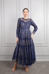 فستان ميدي دانتيل بتفاصيل شفافة واكمام طويلة -كحلي
