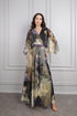 الخامس الرقبة الجناح الوطواط كم الخصر مربوط منقوشة بالاضافة الى حجم الشيفون اللباس الأرجواني
