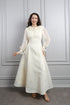 فستان بتصميم أنيق يتميّز بياقة اطفال ناعمة تضيف لمسة أنثوية رقيقة. الجزء العلوي مزخرف بتطريزات خرزية لامعة تمنح الفستان فخامة وجاذبية، مع تفاصيل دانتيل تضيف عمقًا ورقيًا للتصميم. قصة الفستان متوازنة تجمع بين الكلاسيكية والأناقة العصرية، ليكون خيارًا مناسبًا للمناسبات الخاصة مثل الخطوبة وحفلات السهرة.
