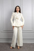 طقم بنطال و جاكيت مزخرف بتطريزات خرزية دقيقة تضيف لمسة لمعان راقية وناعمة. يتميّز الجاكيت بتصميم يُربط عند الخصر ليمنح تحديدًا أنيقًا للقوام ويبرز جمال الانحنائات بشكل متوازن. تطريز الخرز المتقن على الجاكيت يعكس الضوء بأسلوب هادئ يمنح الإطلالة فخامة دون مبالغة. يأتي البنطال بقصّة مريحة وانسيابية توفّر حرية في الحركة مع مظهر قوي وأنثوي في الوقت نفسه. يمكن ارتداء الطقم كاملًا لإطلالة متكاملة في المناسبات، كما يمكن تنسيق كل قطعة على حدة بأسلوب عصري مختلف. مناسب لحفلات الخطوبة، والمناسبات الخاصة.