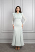 فستان مصمم بتفاصيل دانتيلية وتطريزات خرزية -نعناعي