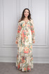 فستان شيفون بطبعات زهور بحبل ربط في الياقة -بيج