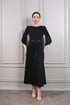 فستان ميدي بكريستالات في الياقة وزينة عالخصر -اسود