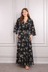 فستان شيفون باكمام واسعة وياقة على شكل مثلث مزين بالخرز على الخصر مقاس كبير -اسود-بيج