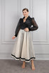فستان ميدي باكمام شفافة وتفصيل زهرة على الياقة مع حزام عالخصر -اسود-بيج