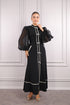 فستان ميدي باكمام بالون شفافة وياقة عالية مع فيونكات في الامام -اسود
