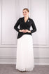 فستان بلونين مع بروش وتنورة بتكسيرات -اسود-ابيض
