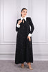 فستان بياقة القميص وبروش زينة مزين بالفصوص مقاس كبير -اسود