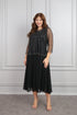 فستان ميدي مزين بتوب شيفون مطرز بالفصوص مقاس كبير-اسود