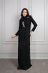 فستان سهرة حجاب مفصل بحجر عالي الرقبة أسود