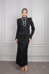 فستان سهرة دانتيل للمحجبات بتطريز كريستالات علياقة -اسود