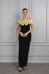 فستان سهرة مكشوف الاكتاف مع تفاصيل زهور وفتحة خلفية -اسود