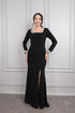 فستان سهرة بياقة مربعة بتطريزات كريستالية وبفتحة جانبية -اسود