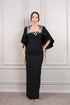 فستان سهرة سترابلس مطرز بالكريستالت بمعطف -اسود