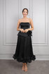فستان سهرة سترابلس مزين بوردة وتصميم تنورة مكشكشة -اسود
