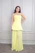 فستان سهرة سترابلس بتطريزات لؤلؤية وتنورة شيفون بتكسيرات -اصفر