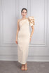 فستان سهرة بكتف واحد بتفاصيل كشكشة -بيج
