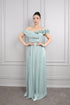 فستان سهرة شيفون مكشوف الاكتاف بزينة زهور وتفاصيل تكسيرات -نعناعي