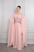 فستان سهرة شيفون تمنح الفستان خفة وحركة انسيابية, بتطريزات دقيقة تضيف للفستان لمسة متالقة وانيقة, صمم بكايب من الاكتاف طويل يصللا للارض, بينما تم تصميم منطقة الخصر بشكل شفاف بتفاصيل ربط فيالظهرز اختياركم لهذا الفستان في مناسباتكم الخاصة او الدعوات يعد خياراً مثالياً لكم.