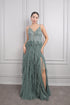 فستان سهرة بحمالات رفيعه وتطريزات ترتر بكشكشات تول -زيتي