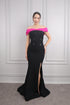 فستان سهرة مكشوف الاكتاف بفتحة جانبية -اسود وفوشي