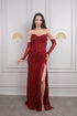 فستان سهرة دانتيل سترابلس بتفاصيل ربط امامية وقفازات -عودي