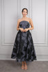 حمالة حزام مطرز التفاصيل منقوشة ميدي زائد حجم مساء اللباس الأزرق الداكن