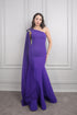 فستان سهرة بكتف واحد بتفصيل كايب مزين بورود خرزية -موفي