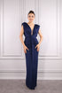 فستان سهرة لامع من قماش التول بفتحة امامية -كحلي