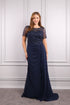 فستان سهرة شيفون مقاس كبير وتوب بالتول مطرز بالفصوص -كحلي
