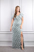 فستان سهرة بياقة مثلثة مزين بالخرز والترتر مقاس كبير -نعناعي