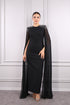 فستان سهرة بتطريز حجري على الأكتاف وتصميم كاب بالتول -اسود