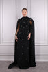 فستان سهرة خناقي بكاب على الاكتاف مطرز بالكريستال -اسود