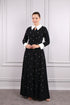 فستان سهرة مزخرف باللؤلؤ بياقة قميص مقاس كبير -اسود