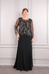 فستان سهرة اسود طويل بلا اكمام ، يأتي مع جزء علوي مزخرف ليمنحكِ إطلالة أنيقة. مع اكمام مزخرفة تعطي تصميماً عصرياً. سيكون هذا الطقم ذو المقاسات الكبيرة خيارًا مثاليًا لمناسباتك أو مناسباتك الخاصة.