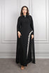 فستان سهرة ساتر بتطريزات كريستالية و وشاح -اسود