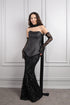 فستان سهرة سترابلس لامع بتطريزات ترتر مع شال شيفون -اسود