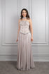 فستان سهرة شيفون بتوب سترابلس مطرز بالخرز مع شال -بيج