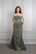 فستان سهرة سترابلس مطرز بالخرز وتفصيل ذيل من الخصر -زيتي