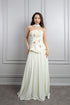 فستان سهرة شيفون بتوب سترابلس مزين بكريستالات ورود مع شال -بيج