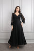 فستان سهرة دانتيل بياقة مثلثة واكمام واسعة مقاس كبير -اسود