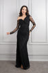 فستان سهرة دانتيل بياقة مائلة واكمام شفافة -اسود