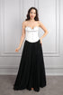 فستان سهرة سترابلس مطرز بالكريستالات بتنورة بتكسيرات -اسود وابيض