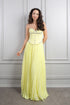 فستان سهرة سترابلس مطرز بالكريستالات بتنورة بتكسيرات -اصفر