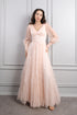 فستان سهرة شيفون بياقة مثلثة واكمام واسعة -خربزي