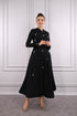 فستان سهرة حجاب بياقة عالية مزين بالحجارة واللؤلؤ -اسود